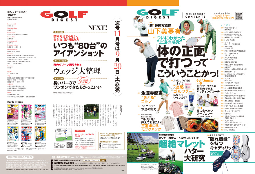 「月刊美活動【あなたは大丈夫?臭いで『迷惑ゴルファー』になっていないか?】」「超連続写真館【山下美夢有】」「これだけは押さえておこう!【王道ポロ&モックネック】」ほか