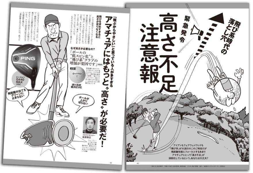 あなたは高さ不足になっていないだろうか。「飛び系」が大流行のアイアン、フェアウェイウッド。実はこの飛距離性能にフォーカスするあまりアマチュアゴルファーたちの「高さ不足」が深刻化しているという。飛びを求めすぎると高さが足りなくなってくるという不思議。あなたは大丈夫?