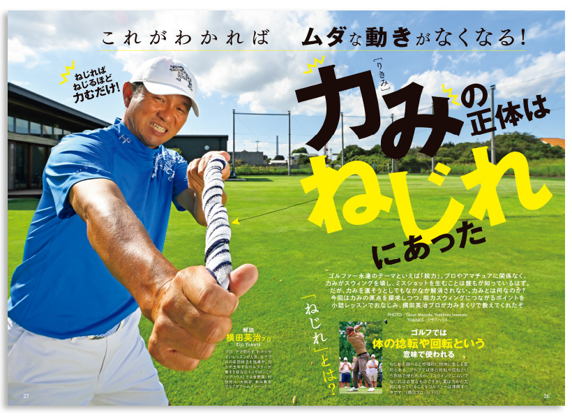 ゴルファーの永遠のテーマといえば『脱力』ではないだろうか。力みがスウィングを壊しミスショットを生むことはゴルファーなら誰でも知っていること。わかっていても力みを直そうと思ってもなかなか解消できないのも事実。今回は、横田英治プロに力みの原因を聞いてみると、体の「ねじれ」だという。その真意とは?