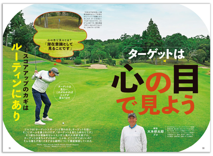 ゴルフはターゲットを狙いそこにボールを運ぶ「ターゲットスポーツ」。だが「ターゲットは見たら終わりです」「ターゲットは心の目で見る、潜在意識として見る」そう語るのは理論的なレッスンで人気の大本研太郎プロ。ターゲットは見ちゃダメなの?いったいどこを狙って打てばいいの?そんな、ショット前の動作に関する、誰もが抱く疑問にについて徹底解説してもらったぞ。これがわかればあなたのスコアは変わります!