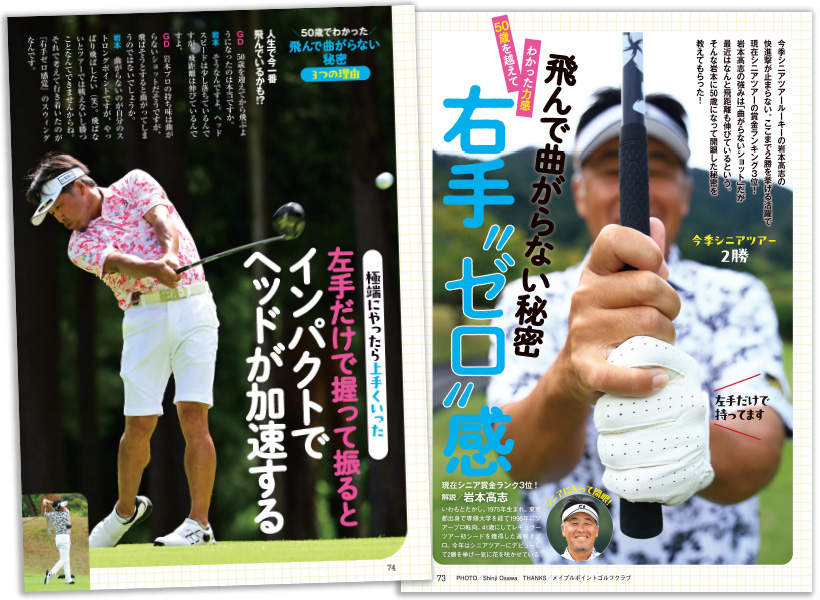 今季シニアルーキーの岩本高志の快進撃が止まらない。すでに2勝を挙げ現在シニアツアーの賞金ランキング3位。最近は飛距離も伸び絶好調の岩本高志に、彼の強みである「曲がらないショット」や50歳になって開眼した秘密をじっくり教えてもらった。