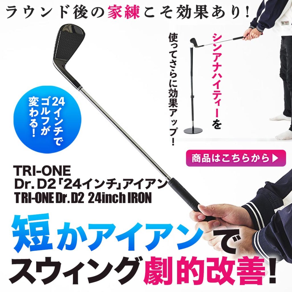 TRI-ONE Dr. D2 24インチ「 短かアイアン」はその名の通り長さ24インチ(約60センチ)と非常に短いアイアン。どんな場所でも練習できる、あると便利な短かアイアンをご紹介!