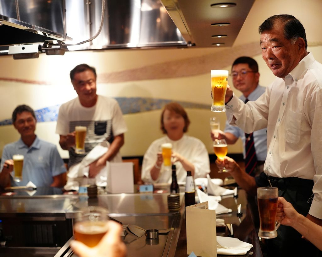 初日の夕食会は、中嶋プロが「札幌へ来たら、必ずここに寄る」という行きつけの「鉄板焼ステーキハウス ケルンアネックス」で。十勝産黒毛和牛や産直野菜の美味しさに頬が緩み、和気あいあいとした雰囲気に包まれた。