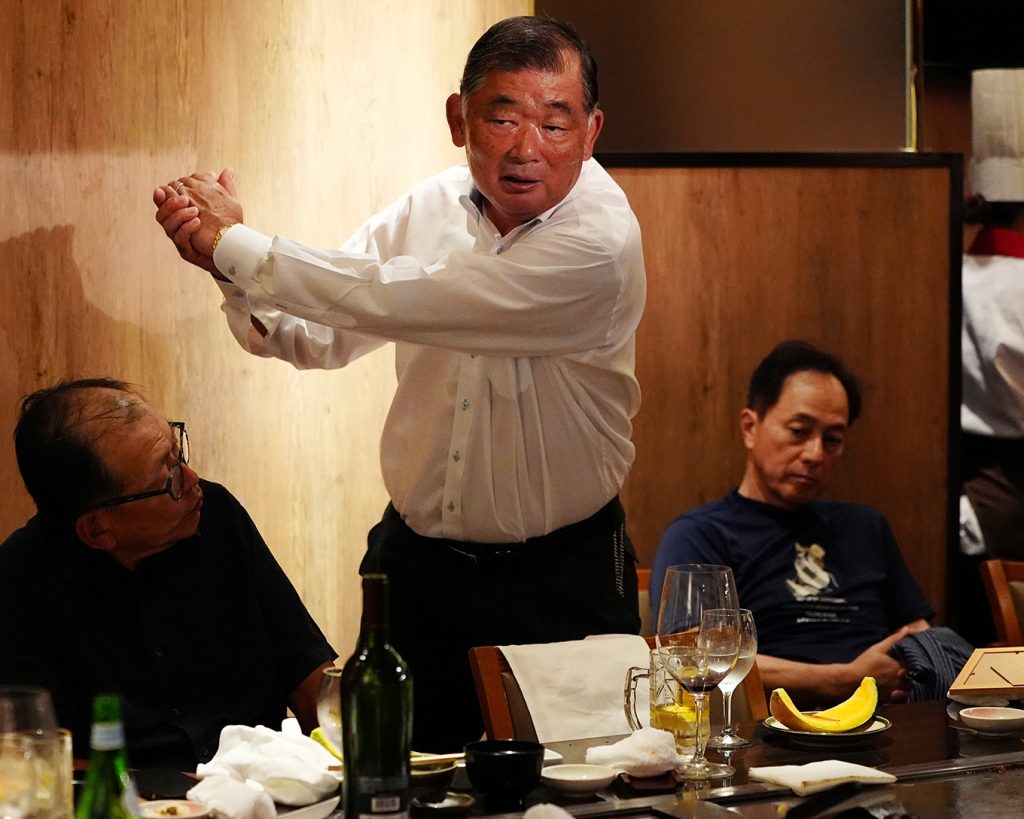 中嶋プロを囲んで着席。翌日の小樽カントリー倶楽部でのレッスン会を前に、1990年日本オープンの秘話など、ここでしか聞けない話に大いに盛り上がった