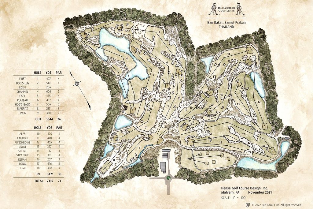 タイに誕生した「バリシアーGL」は、1917年にチャールズ・ブレア・マクドナルドがニューヨーク州ロングアイランドに造り上げ、英国の著名なゴルフライター、バーナード・ダーウィンが世界一と評されるパインバレーGCと同等と評価した、リドーCCをオマージュしたものだ。