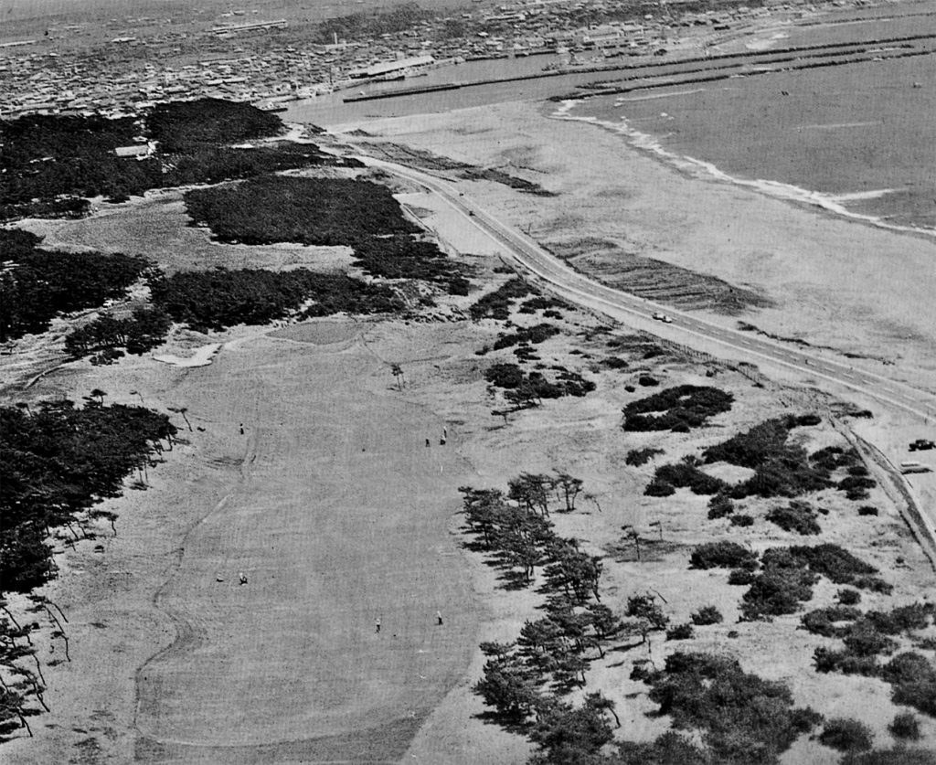 開場当時の空撮。まだ松が小さくシーサイドコースだとわかる