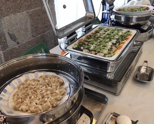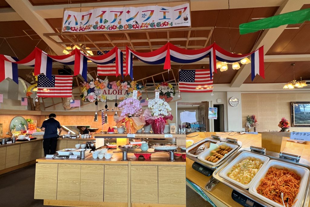 朝7時から14時まで繰り返し利用できるフリーパスバイキングを実施。名物のトンテキも食べ放題で非常にお得だ。朝食は目の前で焼くオムレツ(土日祝日限定)、ホットケーキやグラノーラ、焼きたてのパンなど人気。