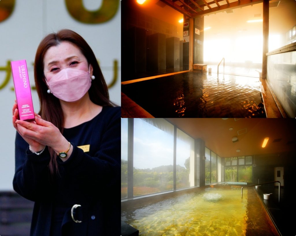 「日本三大美肌の湯」として知られている嬉野温泉。ハウス浴場に温泉が豊富に湧き出ていて、多くのゴルファーが温泉を楽しみに訪れる。コースの温泉から生まれた化粧水も人気