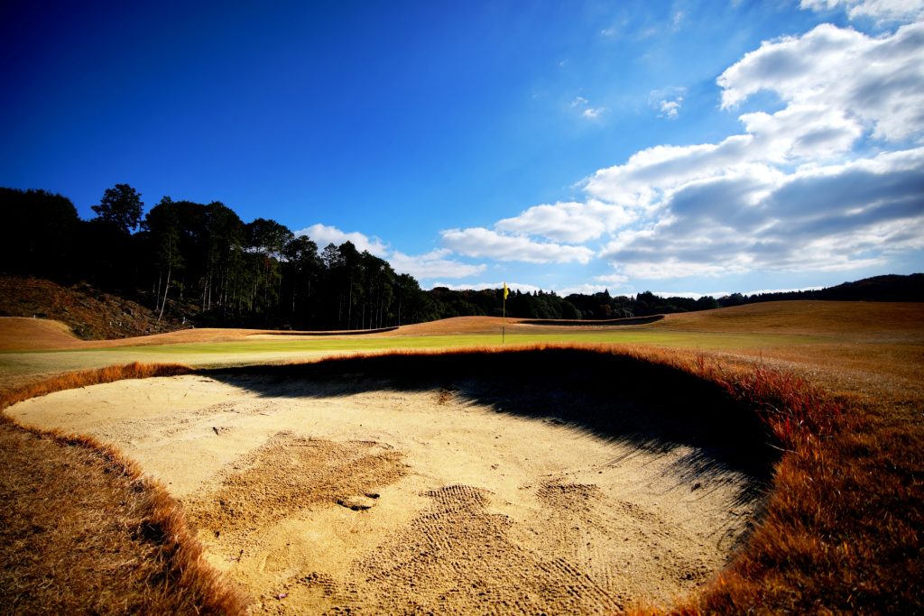 九州のゴルフ場として初めてJLPGAの認定コースになった「佐賀クラシックGC」。プロテストやツアー等、ゴルフというプロスポーツ発展のための環境作りを積極的に行っている。写真は壮大な山々を見渡せる17番ホール(208Y・パー3)。レギュラーティーからでも190Yと距離も十分。グリーン周りのバンカーを警戒して確実にグリーンセンターをとらえたい。