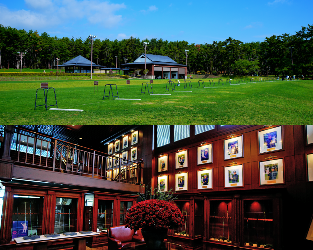 芝から打てるドライビングレンジに広大なアプローチ練習場を完備。クラブハウス内は気品溢れるクラシックな造りで、一歩足を踏み入れると自然と背すじが伸びる。世界基準の施設を存分に堪能してほしい