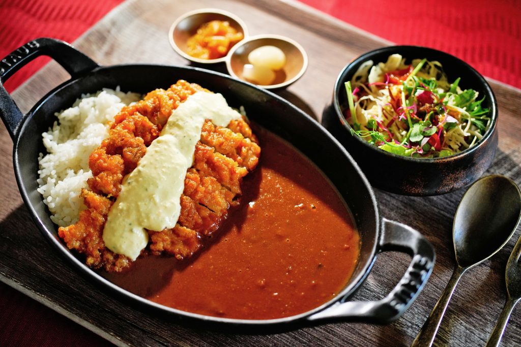 宮崎名物のチキン南蛮だけでも間違いないが、それをなんとカレーに!「うまい×うまい」で『チキン南蛮カレー』はコースの人気メニュー(2530円)