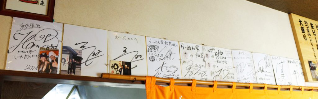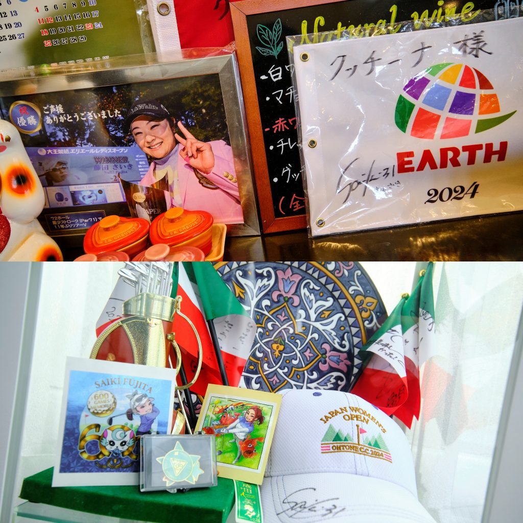 店内には藤田のサイングッズのほかにも女子プロ仲間のサインが飾られている