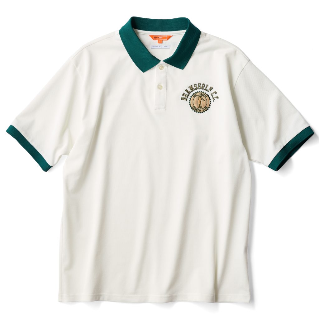 襟や袖口にグリーンをあしらったネオクラシカルなデザイン。高機能なポリエステル素材ながら、ハイゲージ編みによるコットンライクな風合いを楽しめる。左胸の高密度なゴールド刺繍もクール。価格/1万8700円