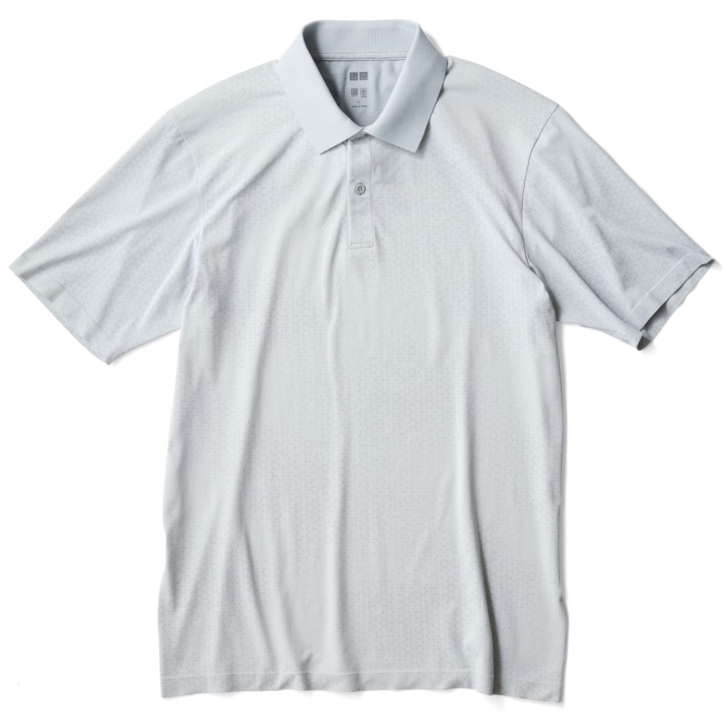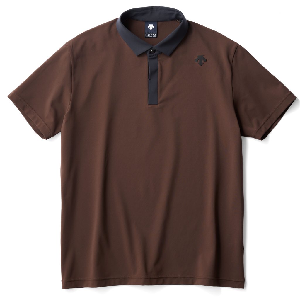 吸汗速乾性に優れたストレッチネイビーポロは左胸部分に同色ロゴをさりげなく配置。シンプル・シックなデザインは1枚でもインナーとしても使い勝手が良い。価格/8800円