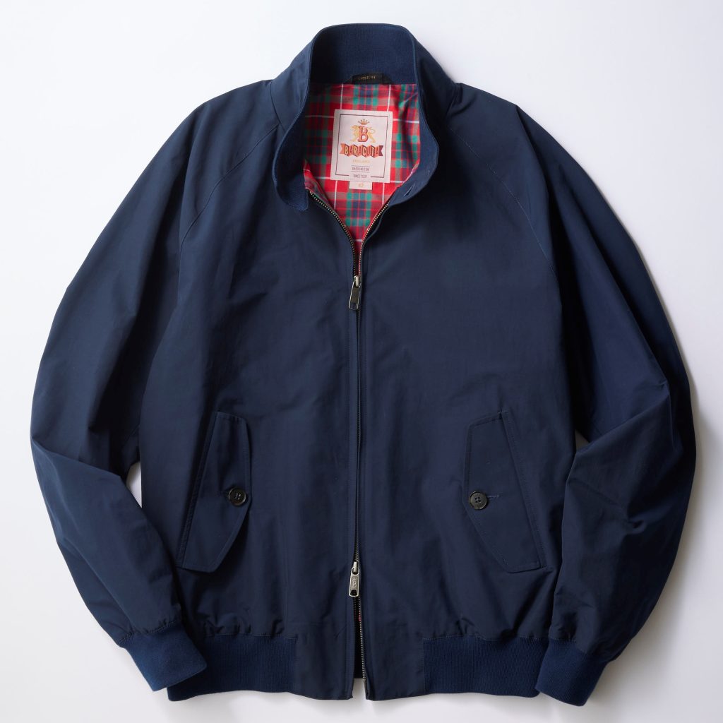 赤いタータンチェックの裏地も特徴の名作〈G9〉の別注モデル。高密度でハリのあるコットン素材を採用した汎用性の高いネイビーなら、どんなスタイルにも馴染みやすい ●5万9400円(ビームスF)