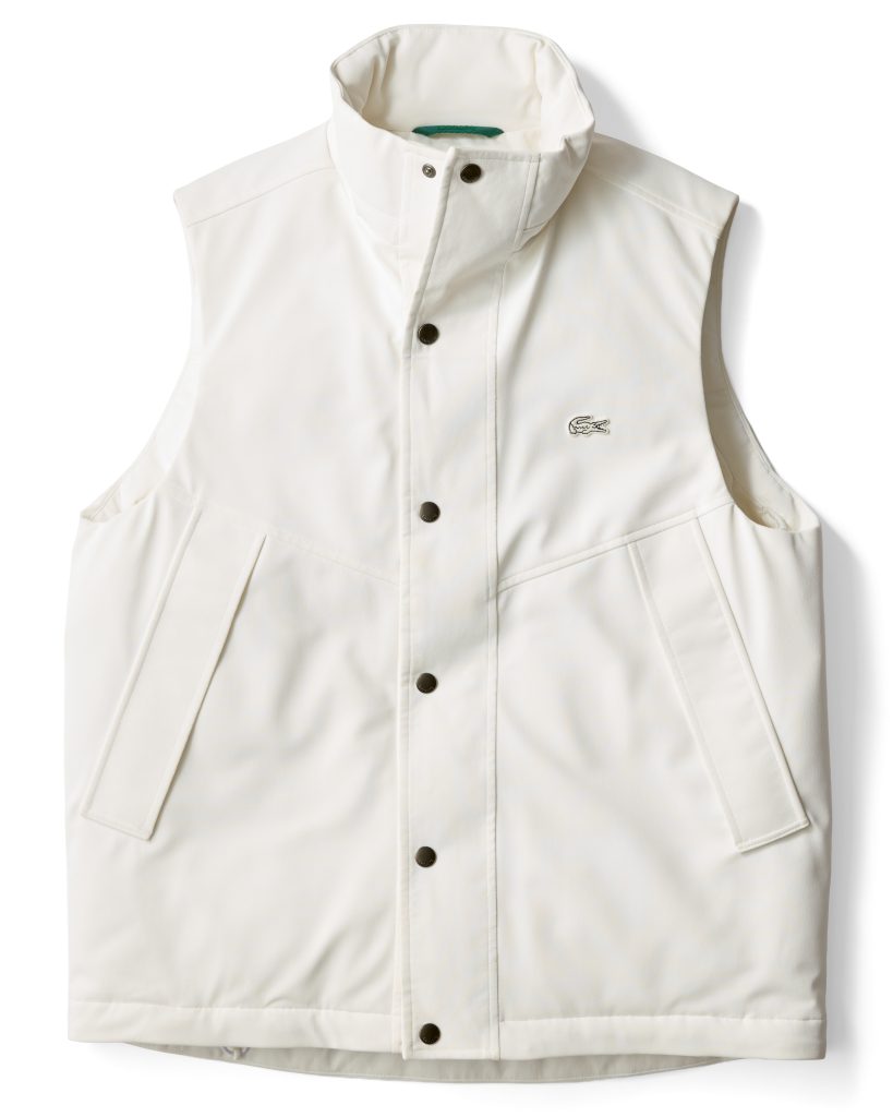 耐水・透湿の膜でラミネートしたピケ素材で埃もつきにくい高機能モデル。白の軽快なカラーリングながら保温性の高い中綿入りはタウンユースにも◎ ●4万1800円(LACOSTE)