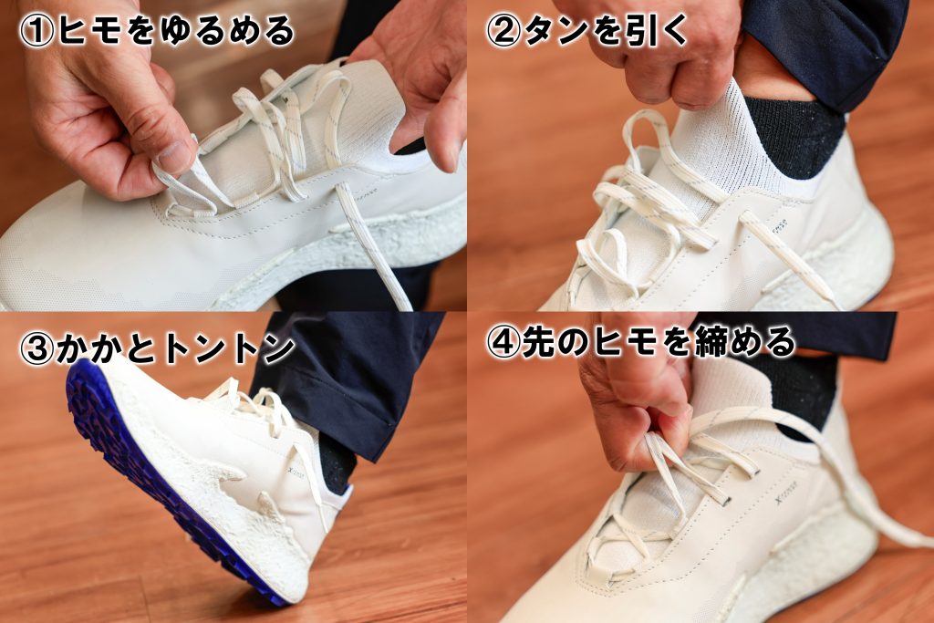 脱ぎ履きのしやすさを重視する人もいるが、1日5~6時間履くゴルフシューズにおいて、わずか1分の「脱ぎ履き」の手間は優先すべきではない
