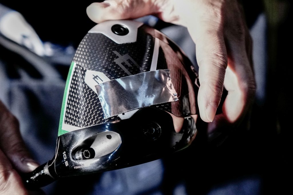 「まずは重めに貼って、重すぎたら少しずつはがすのがポイント。基本的には5g単位で、それ以下の微調整はコースで使いながらの再調整でいいと思います。5g前後ならヘッド側。10g以上ならグリップ下にも振り分けて貼ってみてください。重さが同じでも貼る位置によって感じる重さが変わることもあるので、失敗を恐れずにとにかくいろいろ試してみましょう」