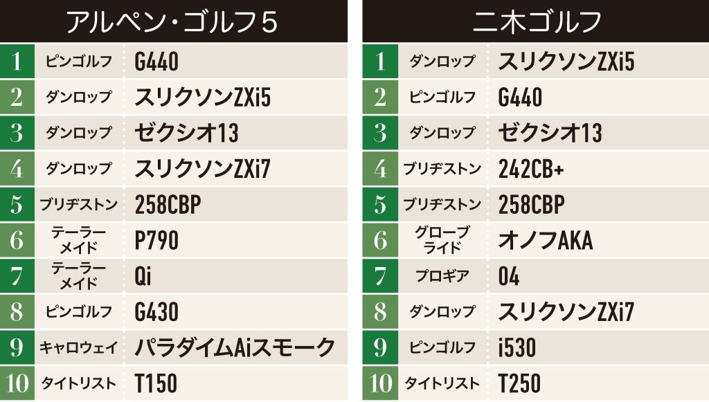 2024年11月1日から2025年10月31日まで1年間の「アルペン・ゴルフ5」、「二木ゴルフ」、「ヴィクトリアゴルフ」、「つるやゴルフ」大手量販店4社の売り上げランキングから、1位10点、2位9点、3位8点……10位1点として、各モデルの総合点を算出。ここではアイアン、ウェッジ、パター各部門のランキングを紹介する。