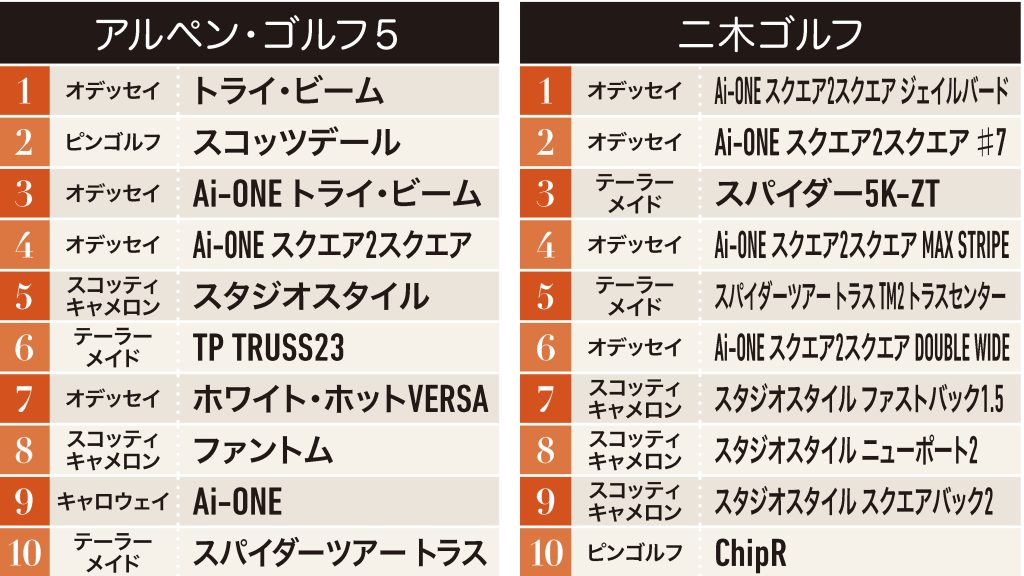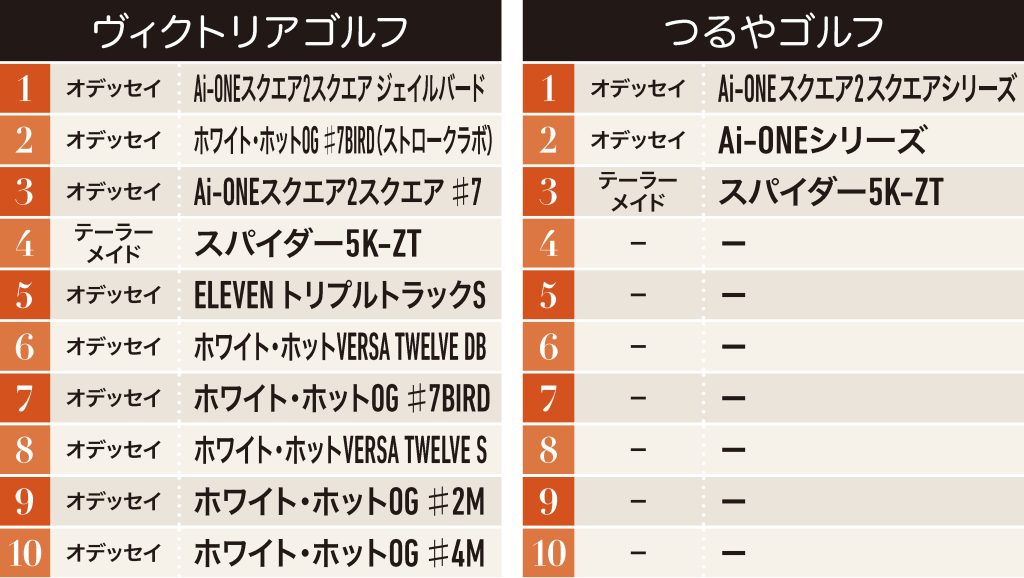 1位と同じ「Ai-ONEスクエア2スクエア」シリーズで、ジェイルバードと人気を2分するツノ型の「♯7」が2位。今年は多くのトルクレスパターが市場投入されたが、それでもオデッセイの人気の高さは健在だった