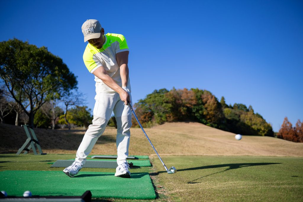 レッスンだけでなくギアへの造詣も深い。「銀座ゴルフレンジ」でアマチュアのレッスンを行う