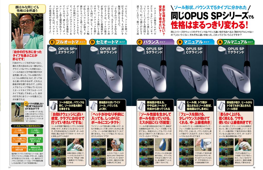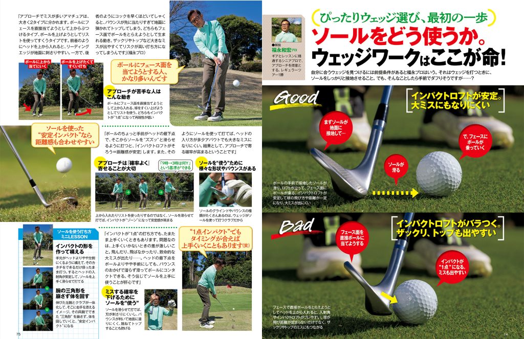 スコアを作るには、グリーン周りの“ウェッジワーク”が大切なことは皆さん、ご存じのとおり。ベストシーズンを迎えるにあたって、福永和宏プロが、ミスを減らし距離感を安定させる「ソールを滑らせる」打ち方を伝授 。また、最新33モデルを操作性や寛容度に基づき5タイプに分類して詳しく検証し、女子プロのウェッジセッティング術、そして状況別のロフト選びも掲載。これさえ読めば、自分に最適な一本と寄せの極意が見つかり、アプローチが得意になること間違いなし!