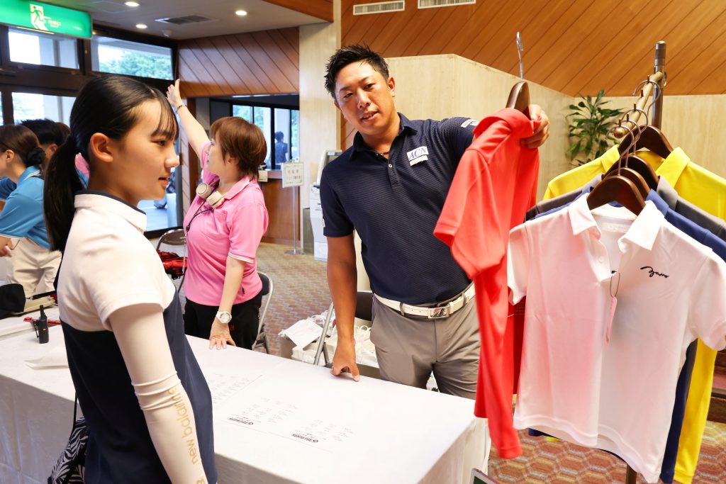 堀川は8月4日から6日の3日間、受付の横に立ち、自身が立ち上げたオリジナルブランド「AGATTO(アガット)」のウェアを手渡しでプレゼント。「AGATTO」のコンセプトは“感謝”。堀川自身が試合で着用することを想定し、素材にこだわり抜き、最高のパフォーマンスを発揮できるよう設計。プロゴルファーらしく「魅せる」ことも意識して、カラーバリエーションも豊富。