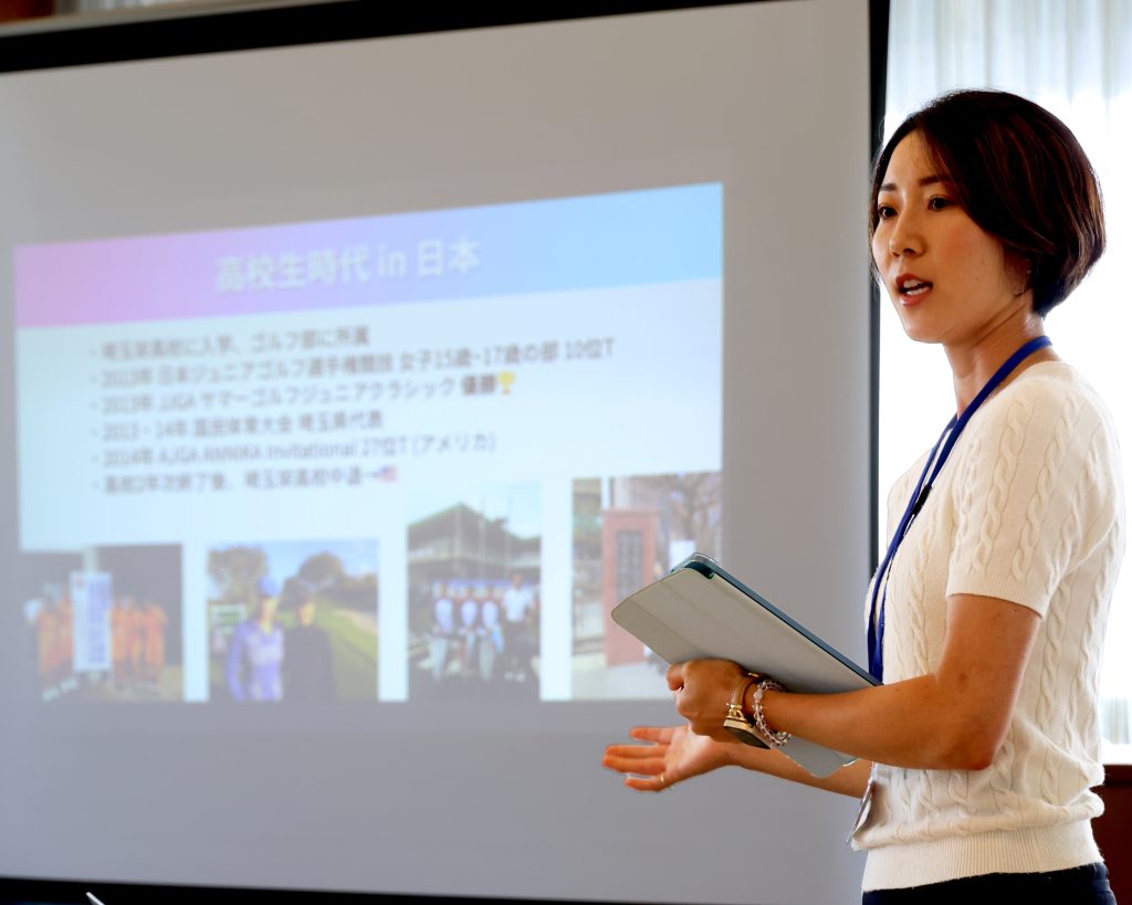 自身もGDジュニアに出場経験があり、高校卒業後に米ワシントン大学ゴルフ部に留学した経験を持つ宮本香怜が講師を務め、海外留学セミナーを実施。これからあらゆる選択肢があるジュニアゴルファーに向けて、自身の経験を伝えてくれた。セミナーを主催した株式会社ウインテックは、IJGA(International Junior Golf Academy)の日本事務局として、世界に羽ばたくジュニアゴルファーの留学のサポートを行っている