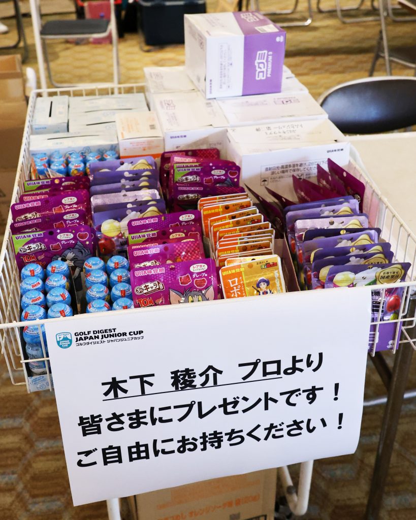 木下はスポンサー契約を結ぶ、UHA味覚糖の商品「忍者めし」などを差し入れ。ジュニアゴルファーたちはひとり1個持っていくことができ、ラウンド中の気晴らしや小腹を満たすために重宝していた