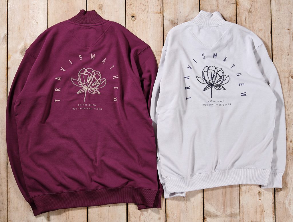 ラウンドだけでなくタウンユースでも大活躍する薄手のジップスウェット。ソフトな肌触りでストレッチ性もあり着心地抜群。UVカット機能で秋の紫外線をシャットアウト。襟元のハーフジップはポロシャツやモックネック、タートルネックなど、下に着るもので表情が変わり、着こなしに幅が出ます。おしゃれなカラーリングやバックスタイルにも注目。