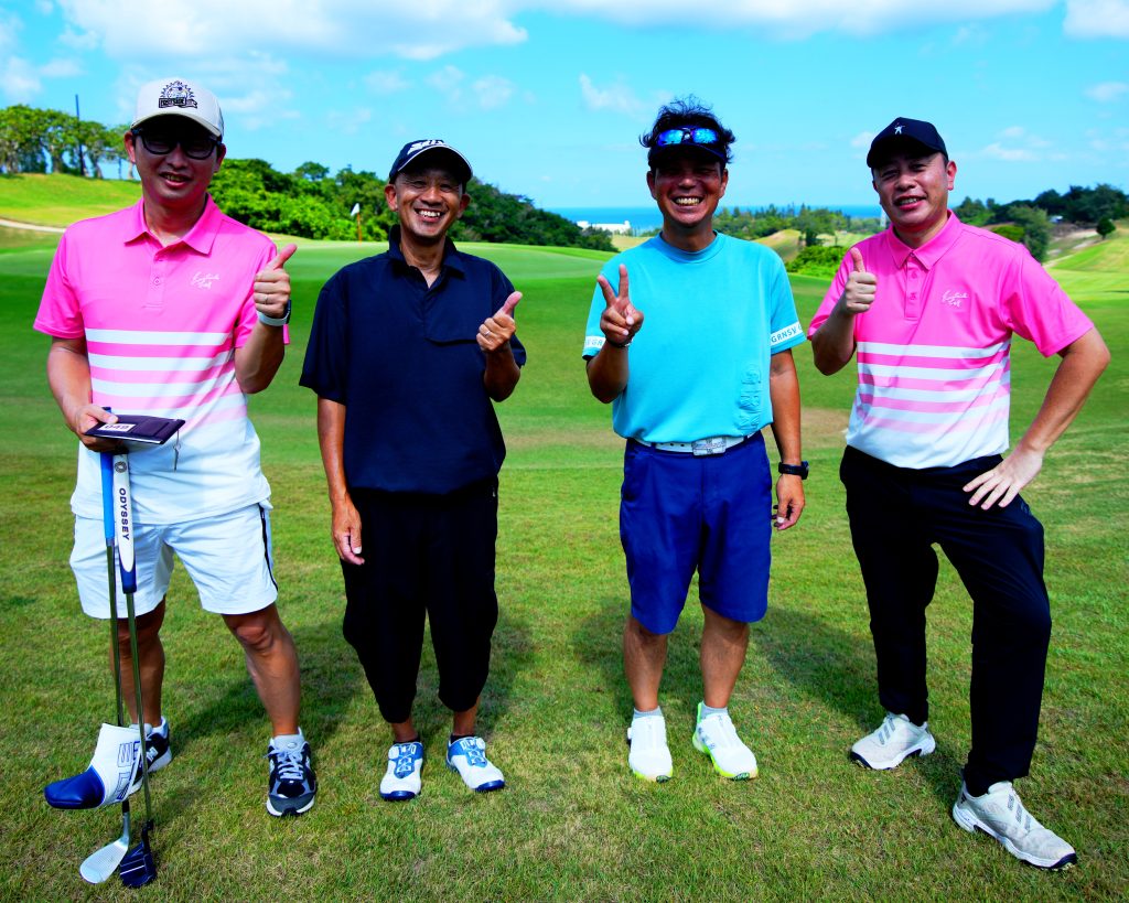 予選最終戦ということで、主催者を代表して、アベレージゴルファーである私が恥を忍んで出場。パートナーは大学の先輩。同組の宮里さん、前田さんペアにたくさん助けられました(汗)