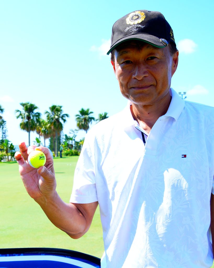 「ツートンカラーのボールを使っているのですが、パッティング時の転がりがわかりやすいだけでなく、真ん中のラインに打ち出しを合わせられるので集中力も増します。このボールを使い出してから調子がいいです」