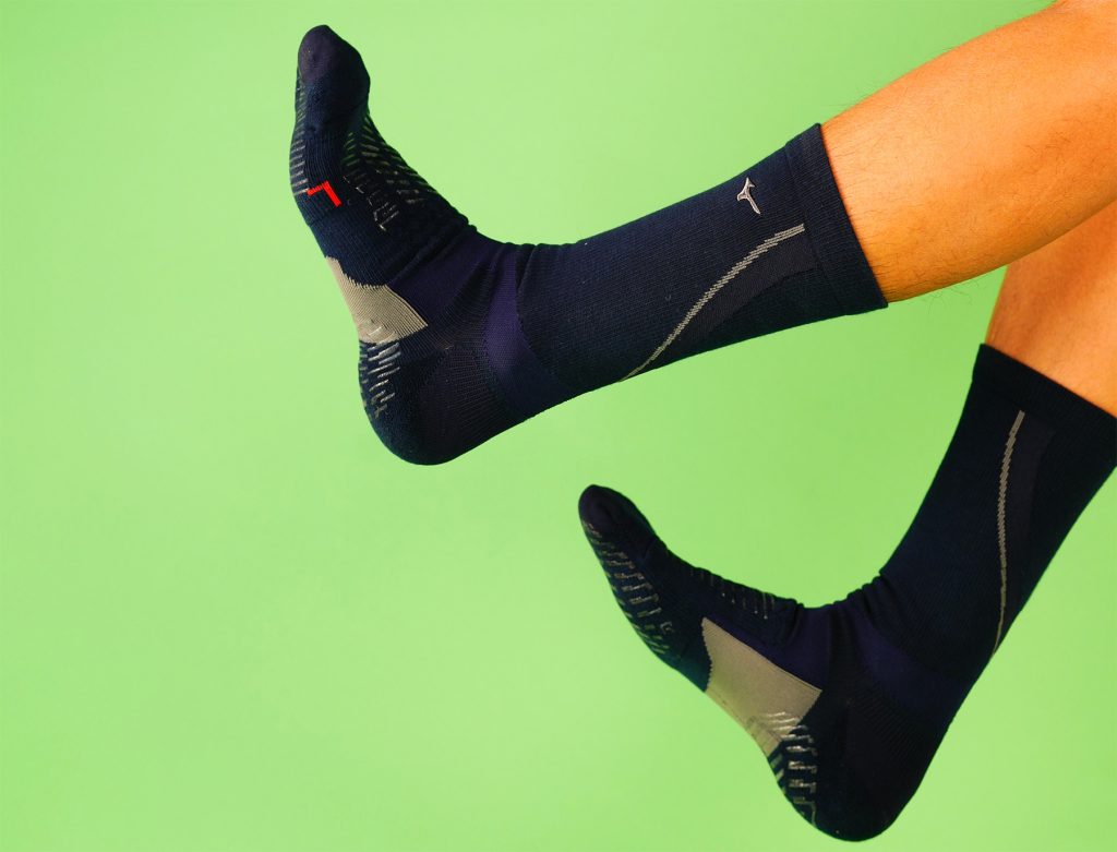 グリップ力に定評のあるナノフロント素材を採用した安定性重視のソックス。ふくらはぎのフィット感も気持ちいい。