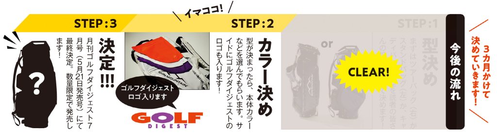 豊富なカスタマイズが可能なサンマウンテンとゴルフダイジェストをつなぐキャディバッグプロジェクト第2段。前号では型を決めてもらいましたが、今号は“カラー決め”です!
