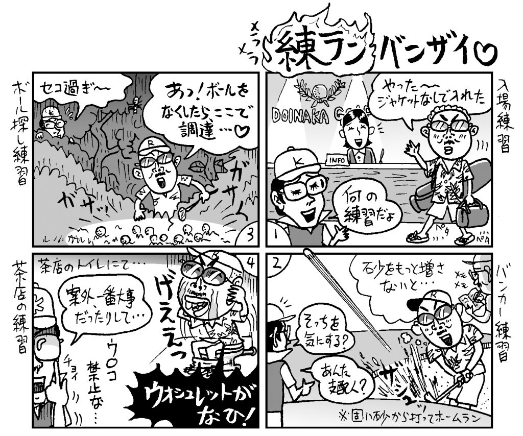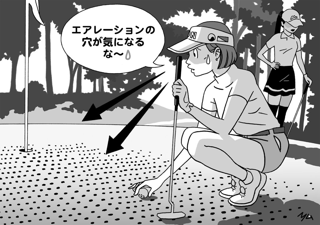これを決めれば本日の初バーディだったが、ビビッてショート。「Oh, No! ビビった~!」と悔しがり、ため息をつく。そんな場面のイラストが7枚にクラッシュ! でもよ~く見ると6枚はどこかが少し違っています。さて正しい1枚はA~Gのどれでしょう?