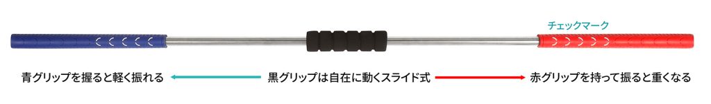 「地面反力をめいっぱい受けながら、ビュンビュン振れる青グリップを握ってスウィングすることで、地面反力をスピードに変換していく感覚がつかめますよ」