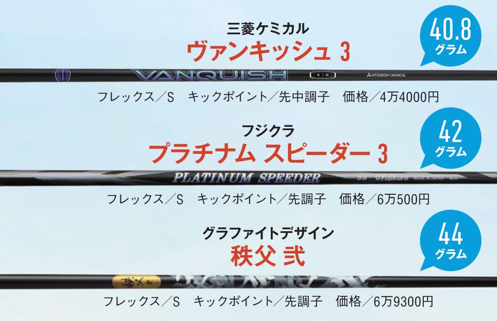 40g台前半でもフレックスSのモデルはある。50g程度まで範囲を広げるとさらに選択肢は増えるので、フィッティングの際にはこのあたりもチェックしてみよう