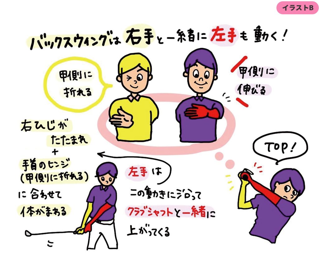 ゴルフスウィングにおいて、手首の動かし方は右だけでなく左も重要だ。プロゴルファー・大谷奈千代に、左手の使い方をイラストも交えつつ詳しく解説してもらおう!