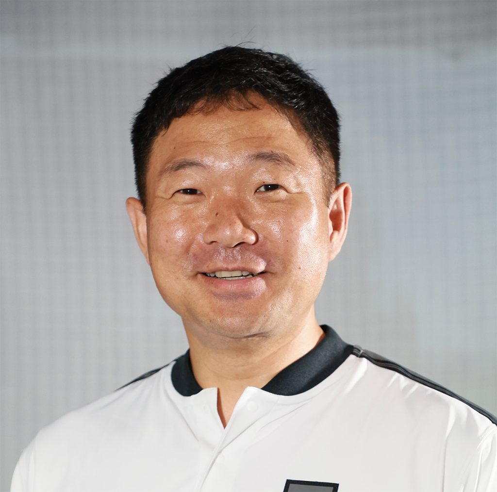 76年生まれ、茨城県出身。その人の体格や筋力などに応じた、理にかなったスウィング構築を目指す指導に定評がある。「オールデイゴルフ馬橋」にてレッスン中