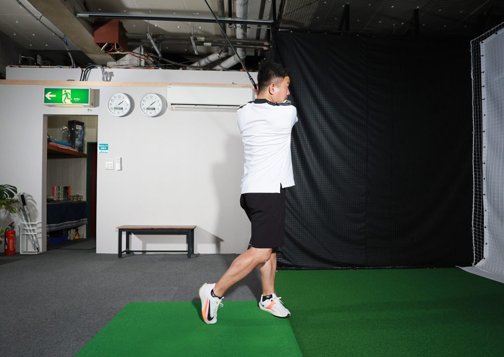 胸の前でクラブを右回りに回す