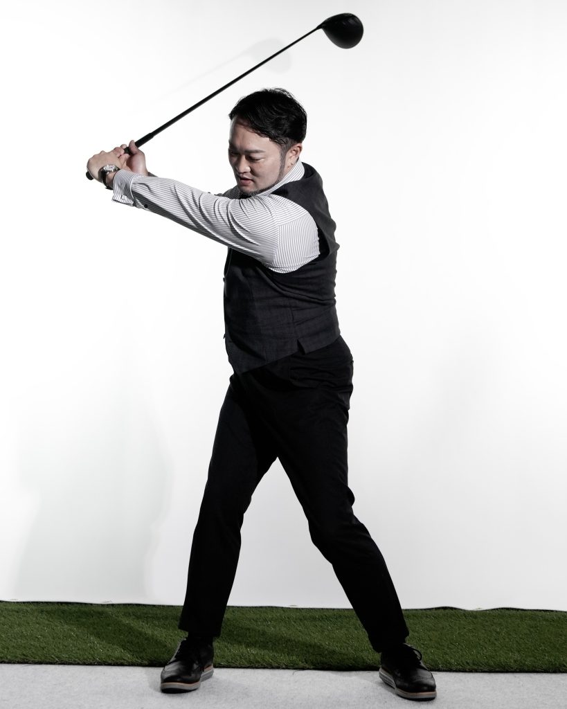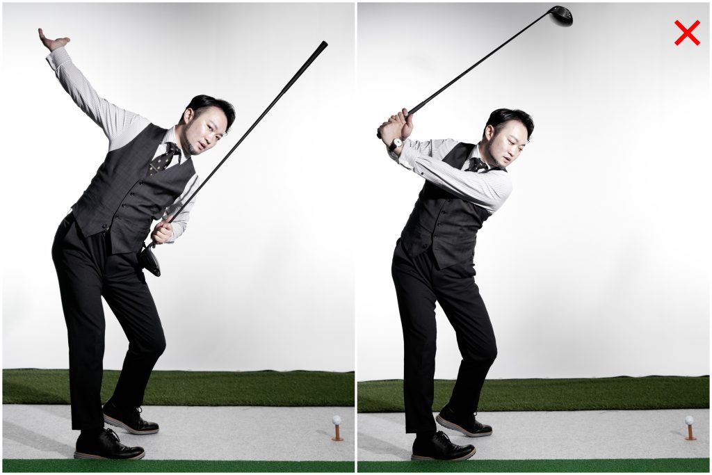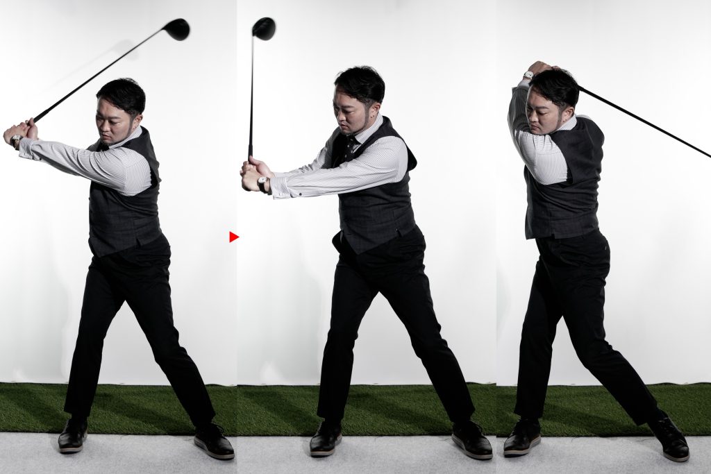 また反動をつけて切り返すので、普段よりもトップが深くなる効果もあります。普段から振っているつもりなのに飛ばないという人、トップが浅い人にはとくにメリットが大きいと思います。