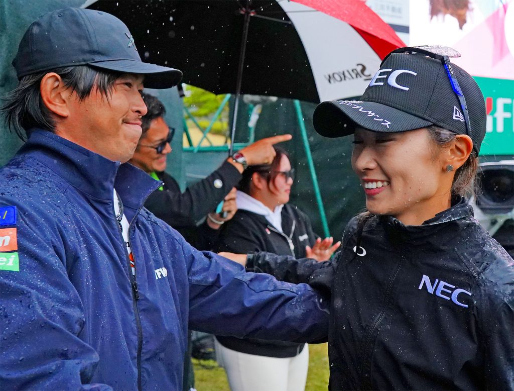 前向きにプレーする気持ちの作り方を大西から学んだ安田祐香は、試合中にカメラマンを見つけると、手を上げて応える心の余裕が生まれた。安田はこの試合(富士フイルム・スタジオアリス)、雨中のプレーオフを制してツアー2勝目を挙げた