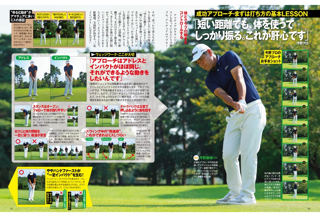 スコアメークをするうえで最も重要といえる「アプローチ」だが、苦手にしている人も多いはず。そこで今回は、アプローチを「打ち方」と「クラブ選び」の両面から徹底的に考察。前半では、名手・今野康晴プロが基本的な打ち方から状況判断のテクニックまで細かく指南。後半では、女子プロのウェッジセッティングに最新ウェッジの試打まで、盛りだくさんの内容となっている。これさえ読めば、苦手なアプローチを克服できること間違いなし!