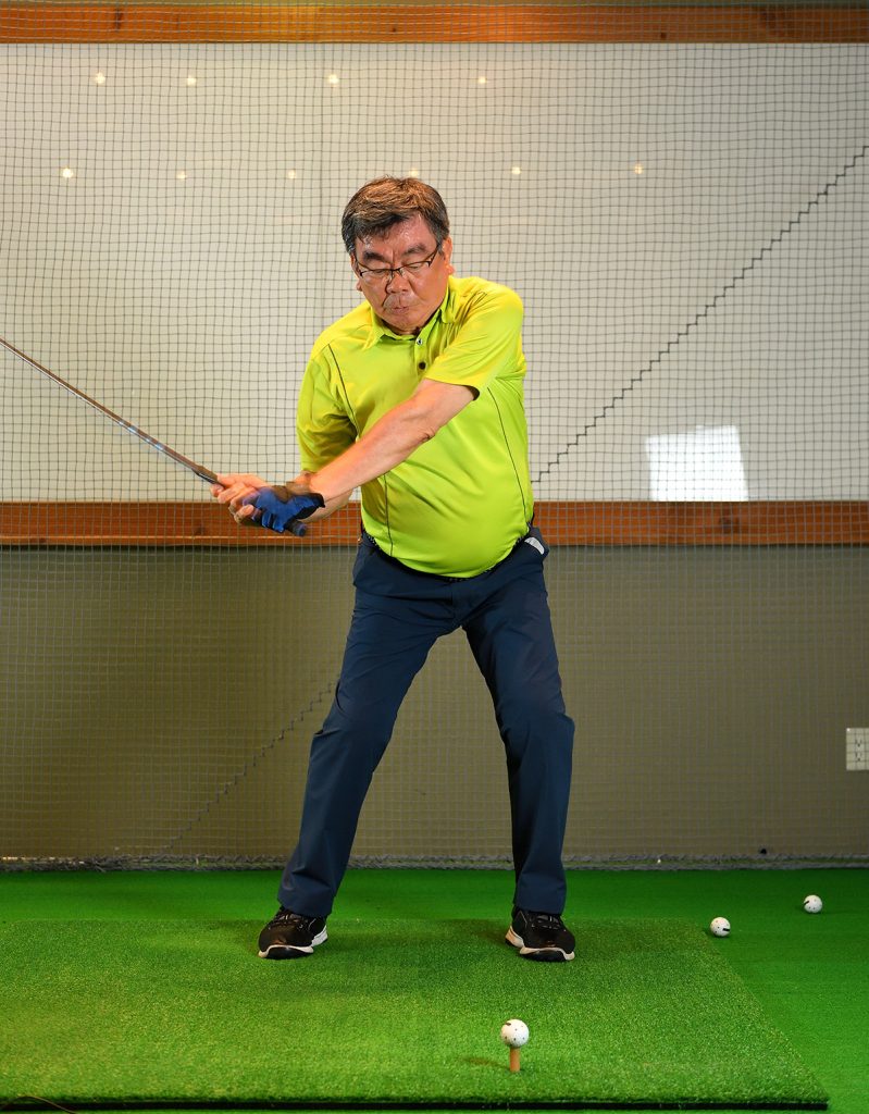 コースに出ると練習場より明らかに飛距離が落ちてしまいます。「テークバックが上がり切る前に打っている」とよく言われるんです。