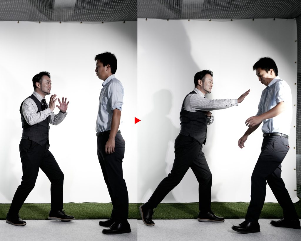 人を押し飛ばすときに、腕だけの力では相手はビクともしない。踏み込んで自分の体重を乗せることで大きなエネルギーを生み出す