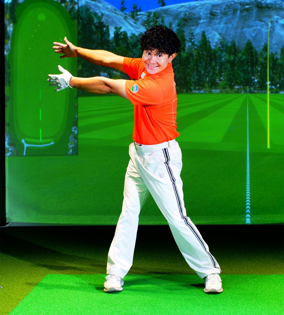 飛ばすには「ヘッドに仕事をさせる」ことが大事だとよく言われるが、シャフトのしなりを使って効率よくヘッドを走らせるにはどうすればいいのか。最後はドラコン選手としては小柄ながら最長429Yの飛距離を誇る松本一誠プロに話を聞いた。