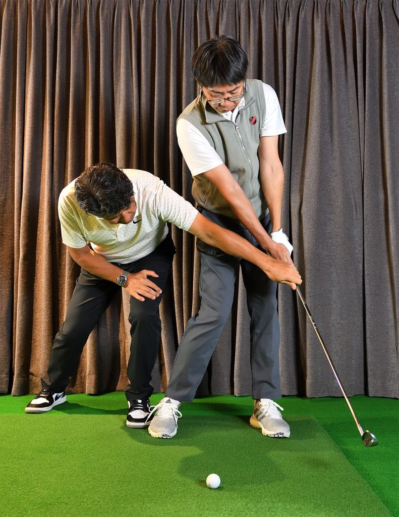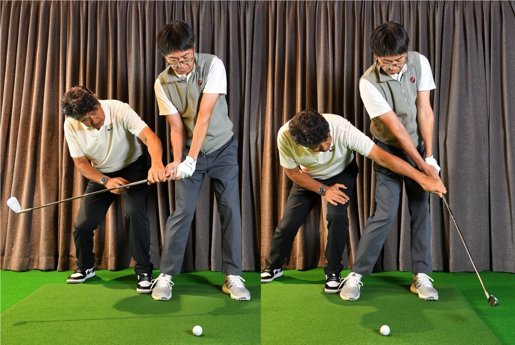 上田 この感覚と比べると、今まではとくにフォロー側で前腕同士の間隔が離れすぎていたのがわかります。
