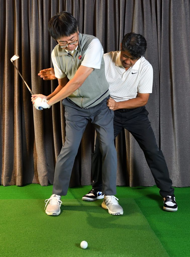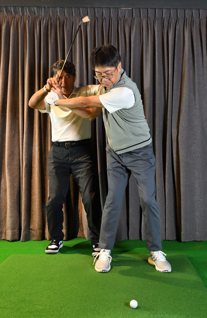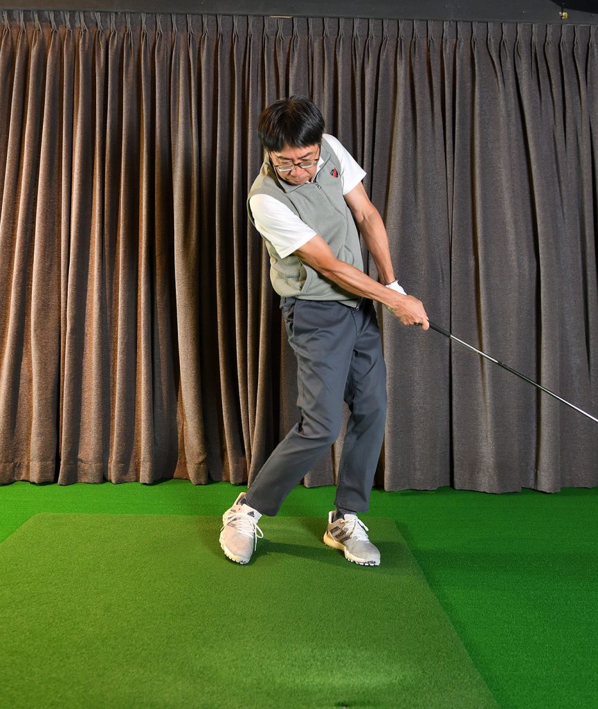 フォローまで両手の一体感が保てていません