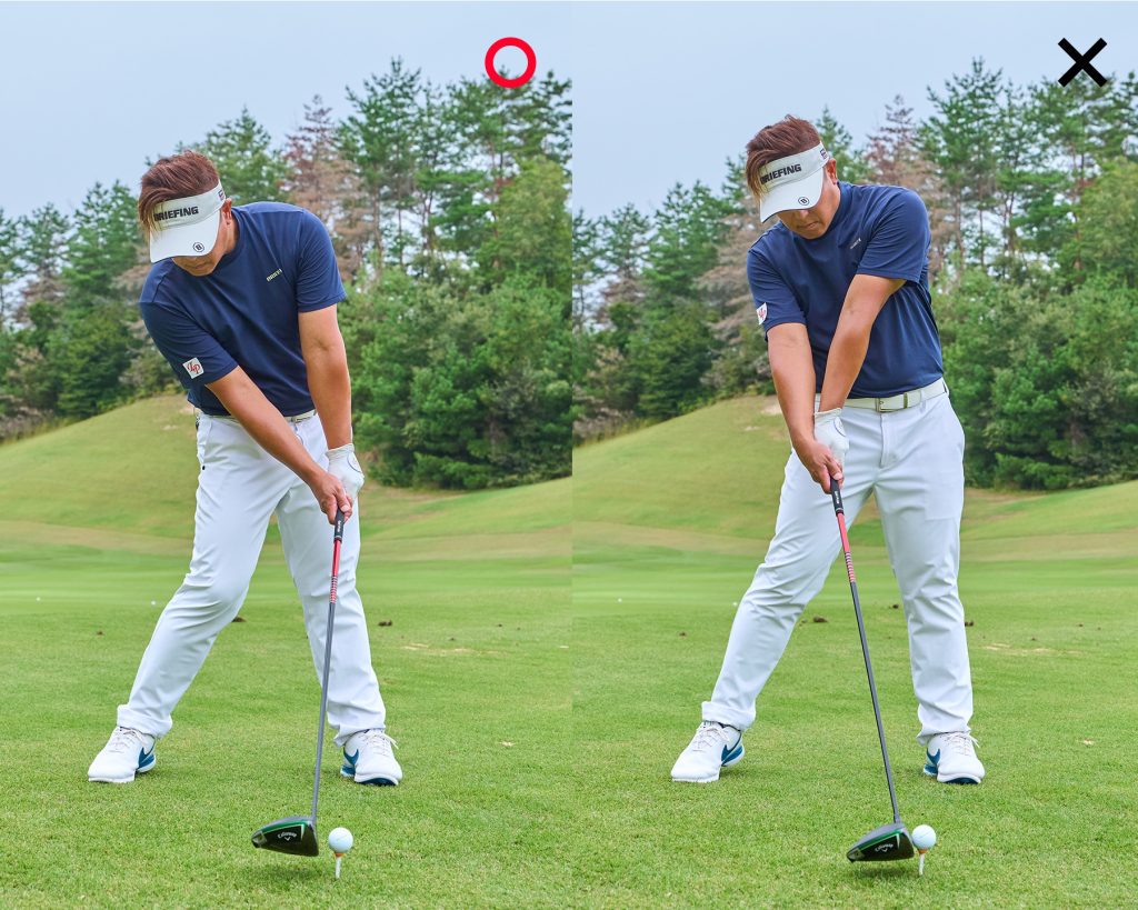 吉田 アッパーに打つために、頭の位置を変えないように、頭を右に残してクラブを下ろす、というほうがわかりやすいかもしれません。