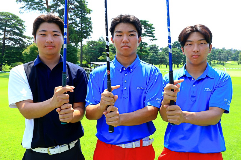 左から久我健心くん・加藤蓮くん・大地陸遥くん。毎年霞ヶ関CCで開催されるジュニアの日本一決定戦「日本ジュニア選手権」。この大舞台で“桜美ジュニア”たちは、エイトフィンガーグリップでクールに戦っていた!